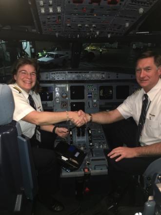 Next stop -- in 1996 -- was "the No. 1" -- being hired at United Airlines. "Like many," she says, "I started as a flight engineer on the Boeing 727. Since then, I have also flown the 737, the 777 and the one I am currently flying, the Airbus A320, which is my favorite so far. I started an A320 first officer 19 years ago and now I'm a captain."