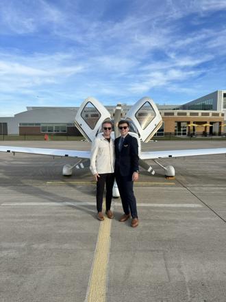 While Warner believes all of his aviation instructors were excellent and were genuinely interested in the success of their students -- in addition to Thinnes as his student-ambassador overseer -- he holds a special appreciation for Professor Lori Brown for her networking guidance and industry-readiness coaching. "She prepared me for the corporate world," he says, "through her introduction to industry associates and conference attendance. She helped me bridge the gap from academics to industry."